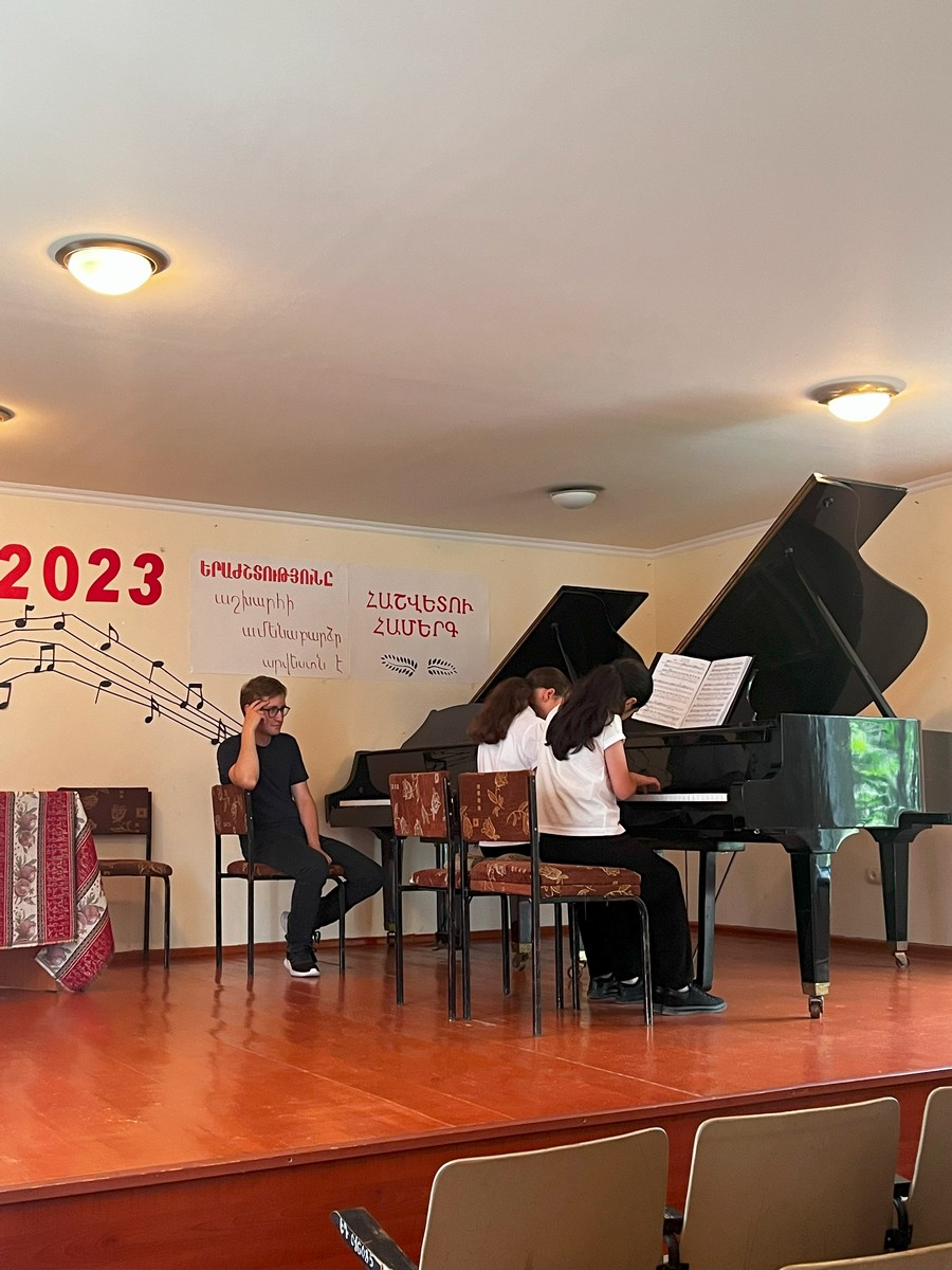 Մեր ճամփորդությունը մեկնարկեց հմայիչ Գորիս քաղաքում՝ շրջապատված շունչ կտրող բնությամբ և ջերմ մարդկանցով: Մենք արտոնություն ունեցանք այցելել տեղի երաժշտական դպրոց և ականատես լինել երկու երիտասարդ աշակերտների անհավատալի տաղանդին: Նրանց կիրքն ու նվիրվածությունն իսկապես ոգեշնչող էին: Սյունիքի մարզ ճամփորդության երկրորդ օրը մենք հաճույքով ականատես եղանք անվանի երաժիշտ Դմիտրի Մասլեևին, ով վարպետության դասեր է վարում Ագարակ քաղաքի երաժշտական դպրոցում: Դա ուշագրավ փորձ էր, քանի որ նա իր փորձն ու գիտելիքները կիսեց ցանկացող ուսանողների հետ: Բացի այդ, մենք հնարավորություն ունեցանք հանդիպելու և շփվելու Ագարակ և Մեղրի քաղաքների տեղի ուսուցիչների հետ.