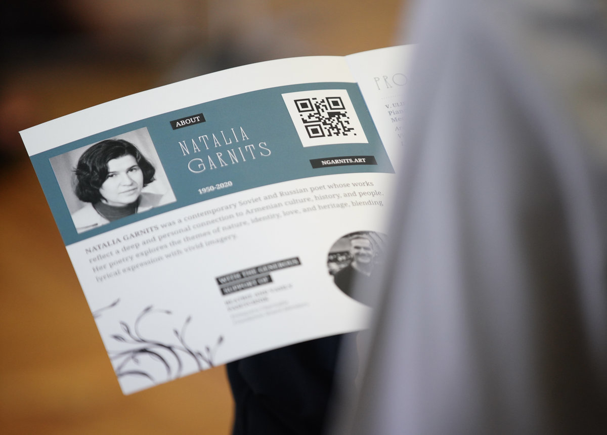 The program is a dialogue between Natalia Garnits' poetry and music by Komitas, Khachaturian, Arutiunian, Keuchkerian, Rachmaninoff and Ulikhanyan.
