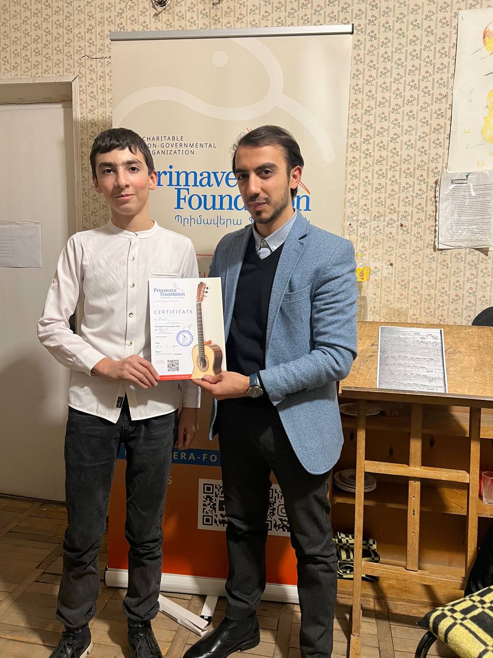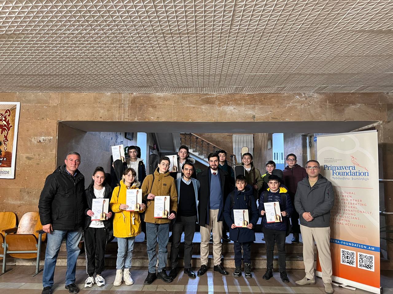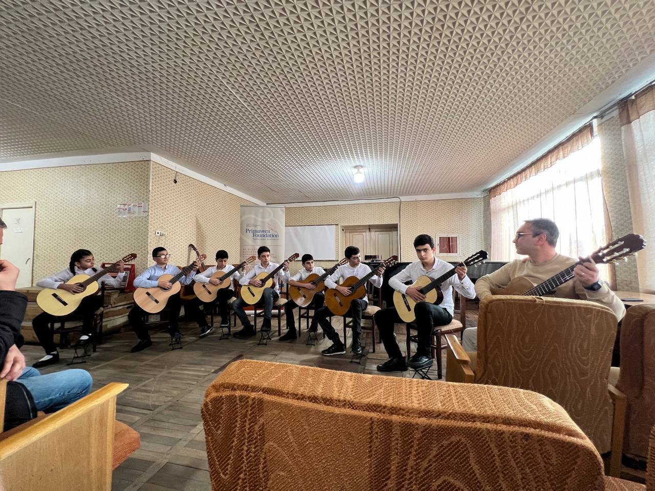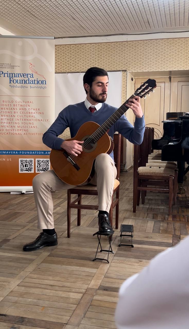 Our classical guitar tutors, Vahan Sargsyan, and Henrik Melikyan, consistently travel to Armenian regions, bringing emotional support through music with the series of concerts dedicated to Artsakh refugees. In Cherentsavan, they also gave classical guitar master classes to young Armenian musicians right after the performance.